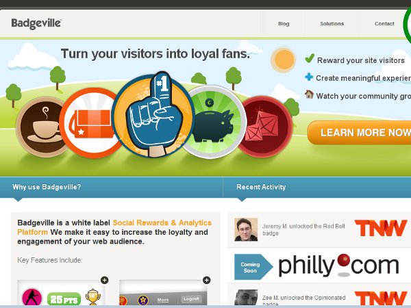 Badgeville (www.badgeville.com), The Behavior Platform, is the leading provider of gamification and social engagement solutions for world-class businesses, enabling companies in virtually every industry to influence and measure user behavior. Companies and organizations from across the globe are using our award-winning Software-as-a-Service (SaaS) solution to increase customer loyalty, user engagement and employee performance. With 175 customers, Badgeville brings Game Mechanics, Reputation Mechanics, and Social Mechanics to world-class companies including Deloitte, EMC, Universal Music, Samsung, CA Technologies, Dell, Bell Media, NBC, The Active Network, and Recyclebank. Founded in 2010, Badgeville is based in Menlo Park, Calif. And has offices in New York and Europe. Follow @Badgeville to learn more.