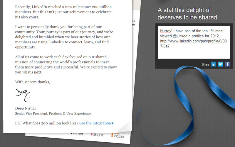 Are you part of LinkedIn elite? LinkedIn has recently began sending out notifications to users who in 2012 were the top 1%, 5% and 10% most-viewed profiles. If you were among those your message looked similar to this: